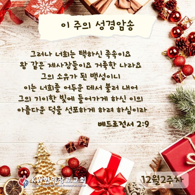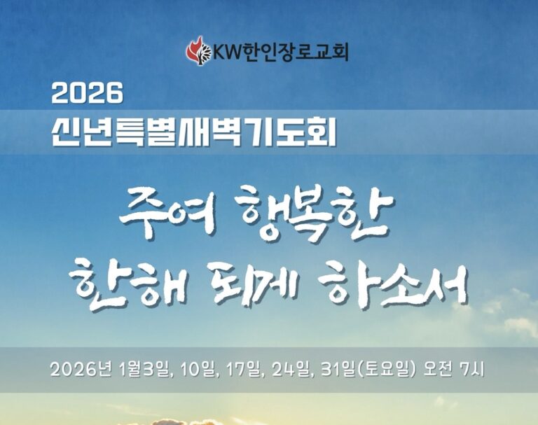 Slide Background이웃과 함께 하나님을 예배하고기도에 힘쓰는 교회(행 10:2)주보주일설교KakaoTalk_Photo_2025-11-22-21-27-292026신년특새 2025 가을 사무엘 학교 2025 성경통독표 예배1부 예배 : 주일 오전 9시 (본당, 1층)2부 예배 : 주일 오전 11시 (본당, 1층)아동부 예배 : 주일 오전 11시 (그레이스홀, 2층)청소년부 예배 : 주일 오전 11시 (세미나실, B1)청년부 : 주일 오후 1시 15분 (본당, 1층) 토요 아침 기도회 : 토요일 오전 8시 (본당, 1층)자세히 보기 교회 이모저모교회 각종 행사 갤러리/블로그자세히 보기 온라인헌금온라인 헌금 안내자세히 보기 권사 및 안수집사 임직예배 권사 및 안수집사 임직예배 교회창립 53주년 “권사 및 안수집사“ 임직예배 일시 : 9월 21일(주일) 오전 11시 권사임직 : 김윤경 김은경 윤정화 윤숙경 권사인준 : 손령희 안수집사 : 김동범 진혁준 홍의표 안수집사인준 : 권혁용 임현태 장소 : KW한인장로교회 본당