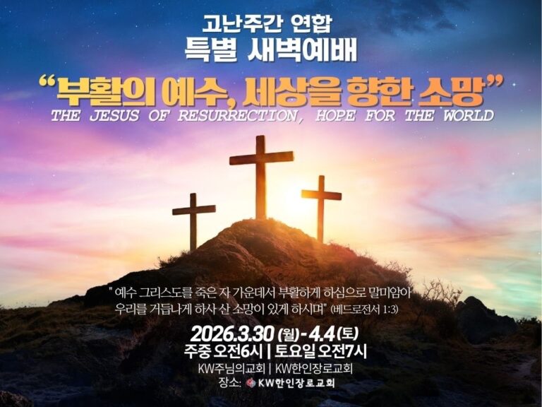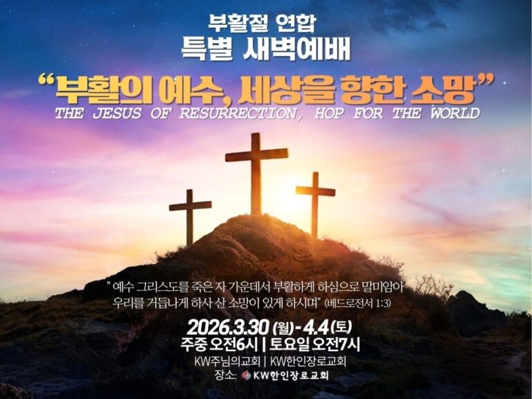 Slide Background이웃과 함께 하나님을 예배하고기도에 힘쓰는 교회(행 10:2)주보주일설교Slide Background이웃과 함께 하나님을 예배하고기도에 힘쓰는 교회(행 10:2)주보주일설교 2026년 사무엘학교 2026년 성경통독표 예배1부 예배 : 주일 오전 9시 (본당, 1층)2부 예배 : 주일 오전 11:30 (본당, 1층)3부 청년예배 : 주일 오후 2:30 (본당, 1층)아동부 예배 : 주일 오전 11:30 (그레이스홀, 2층)청소년부 예배 : 주일 오전 11:30 (HI-C 예배실, B1)토요 아침 기도회 : 토요일 오전 7시 (본당, 1층) 교회 이모저모교회 행사 및 각종 사진자세히 보기 온라인 헌금자세히 보기 모임순모임 : 주일 오전 10:15~ (친교실)선교회 : 매월 첫째 2부 예배후 동성 결혼 및 성소수자 사안에 대한 선언문자세히 보기